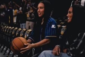赛前,库里在热身时,身为排球运动员的库里大女儿莱莉用排球的传球动作给训练师传球随后助库里命中三分。